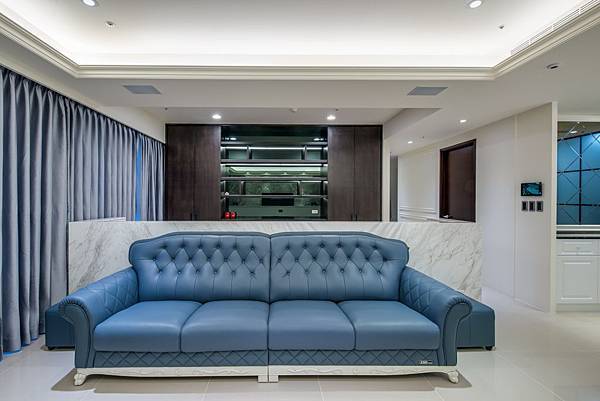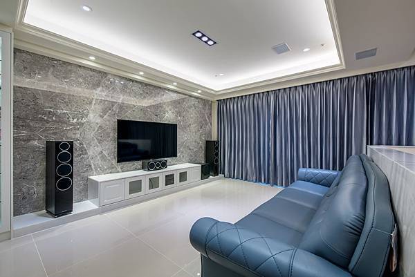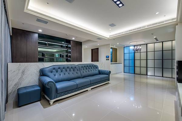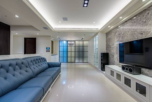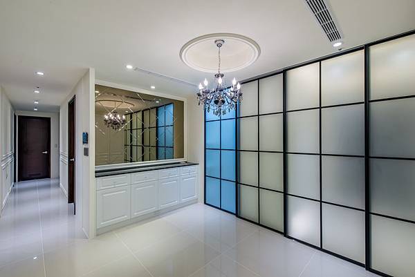 使用建材/實木貼皮、EGGRE系統櫃、鋁件拉門、大理石、ICI得利乳膠漆、EGGRE木地板、菱格紋茶鏡、黑鏡、造型線板、造型系統門片